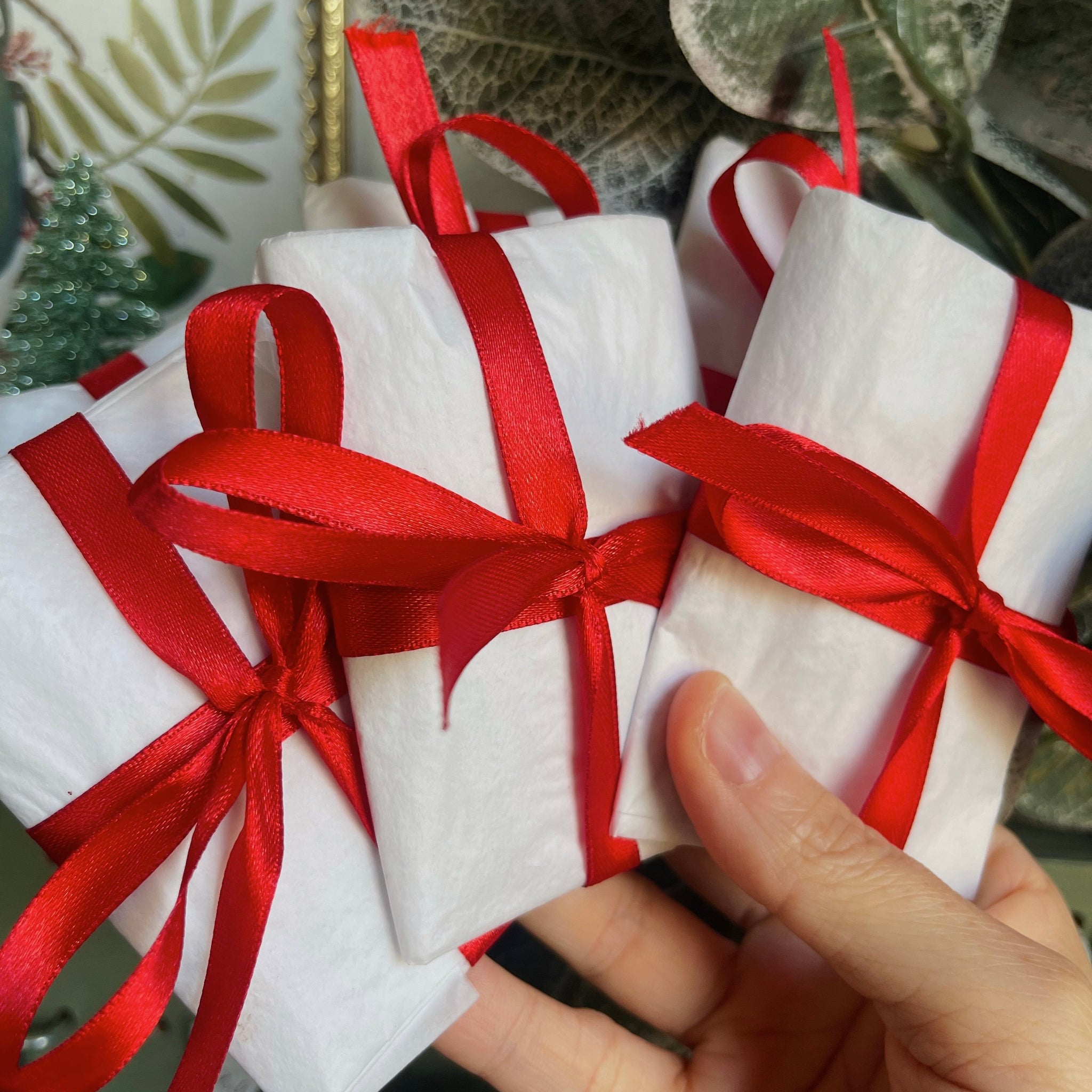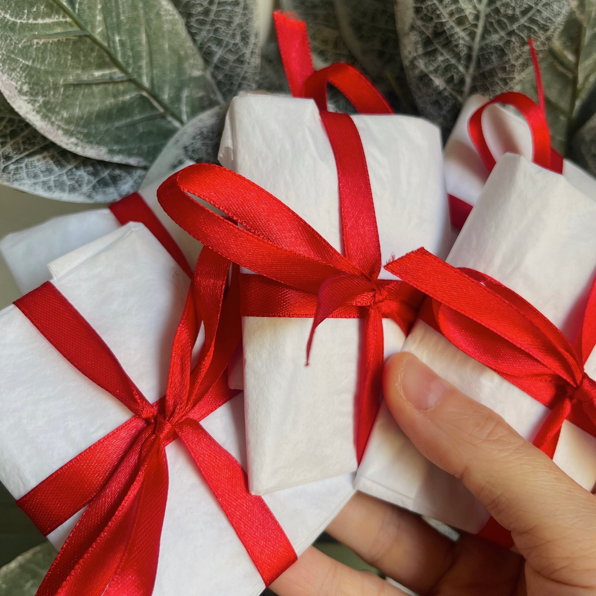 All orders are packaged by me in boxes, to ensure their safety while traveling. They are cushioned with tissue paper and packing confetti, and each pair comes with their own secure drawstring bag.